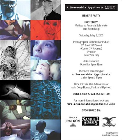 On 3 May 2003 we had an amazing party where we premiered the promotional trailer and raised money for post-production. Check out our generous sponsors on this invite.